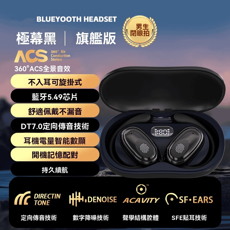 柏林之聲藍牙耳機,滑動調音|挂耳設計 空間音頻|超长续航