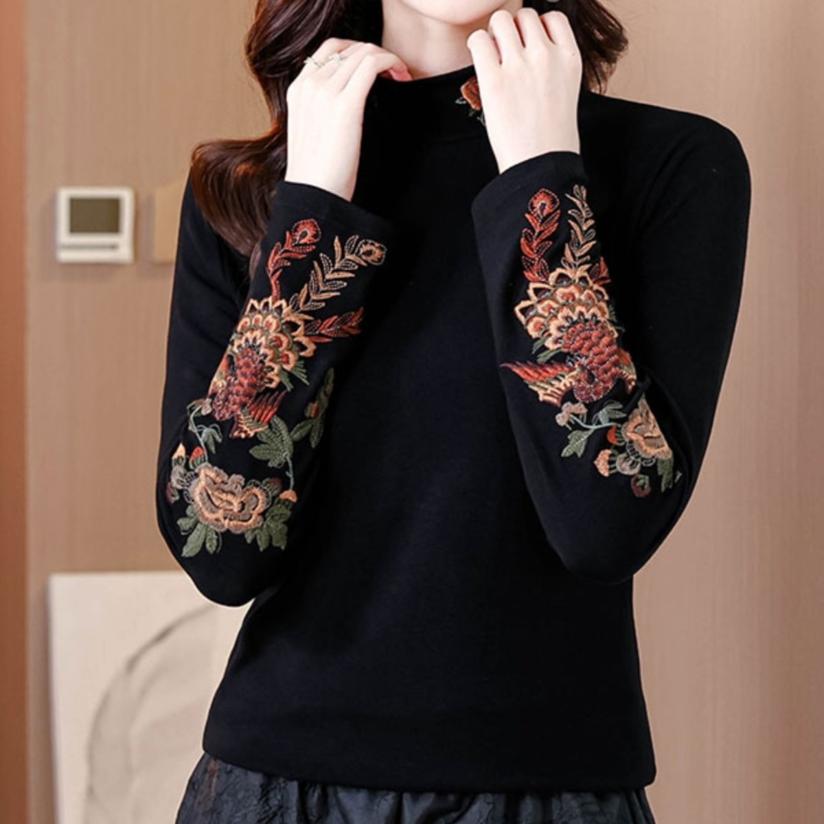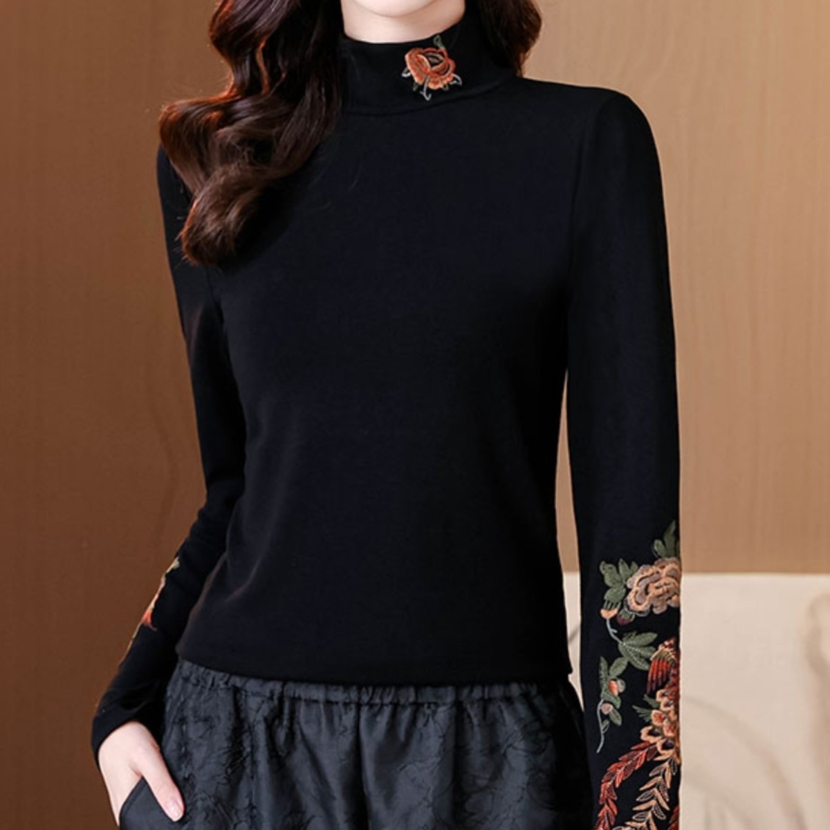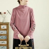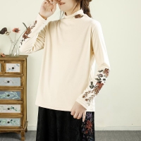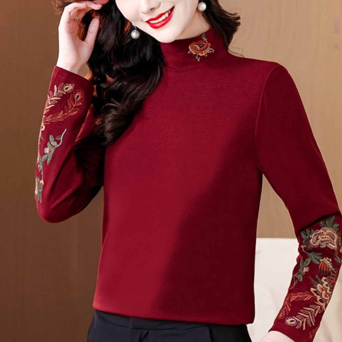 【半高領刺繡底衫】版型寬鬆不挑身材,日常穿搭得體顯貴氣,復古刺繡設計成熟而穩重,顯白又顯年輕!