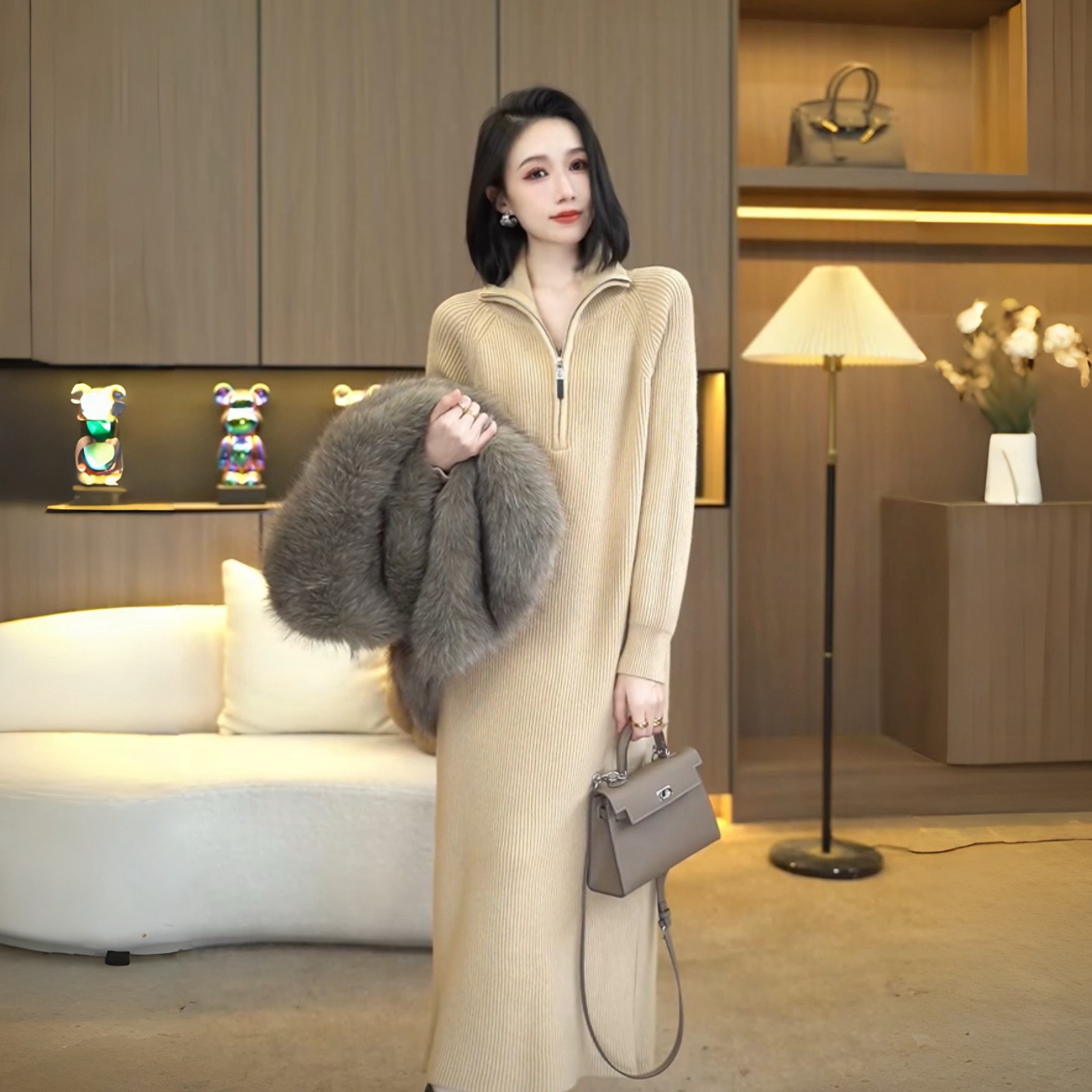 【韓版長袖毛衣裙】羊羔毛絨面料,保暖又不輸氣質,美美的度過整個冬天~